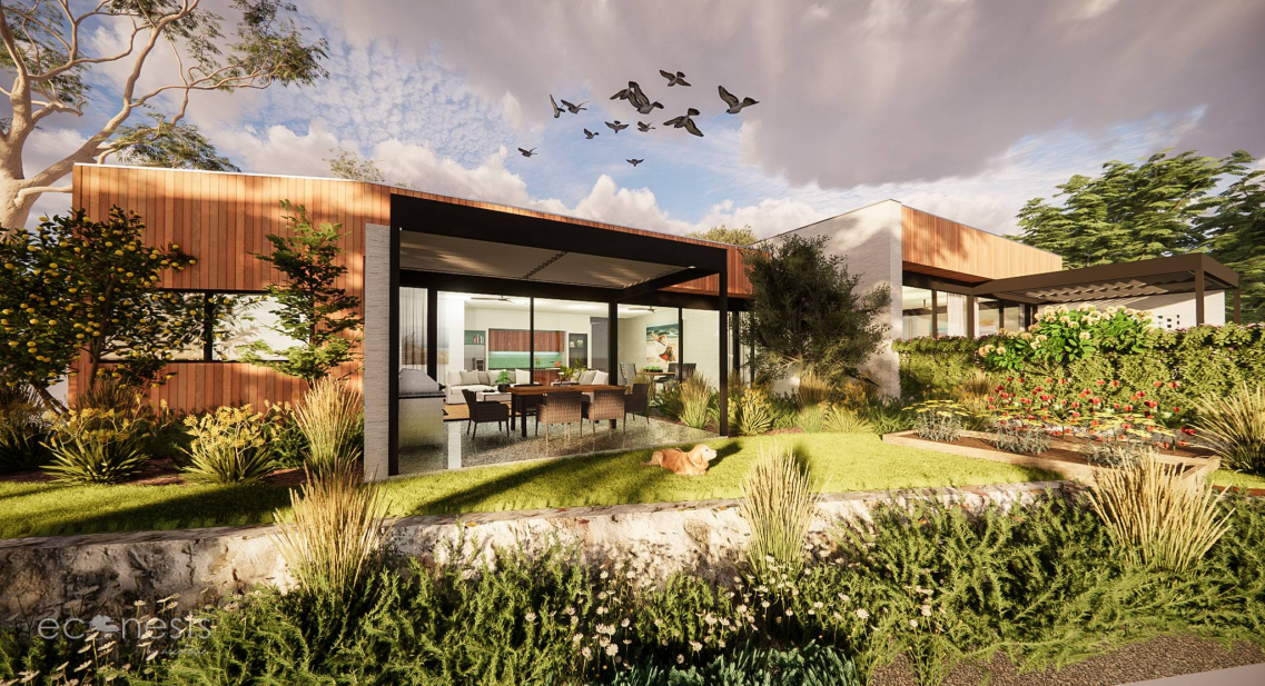 All designed by the brilliant, environmentally mindful Arcologic Design, sustainability will also be a key feature. Overall solar passive design will be implemented through inclusions like high-performance glazing, solar panels, motorised solar pergolas and reverse brick veneer—in which the brick sits on the inside of the wall frame to make the most of its thermal mass and help stabilise internal temperatures. As a result, they’ve both scored outstandingly well in the NatHERS energy assessments, with one achieving 8.6 stars and the other 9.1.