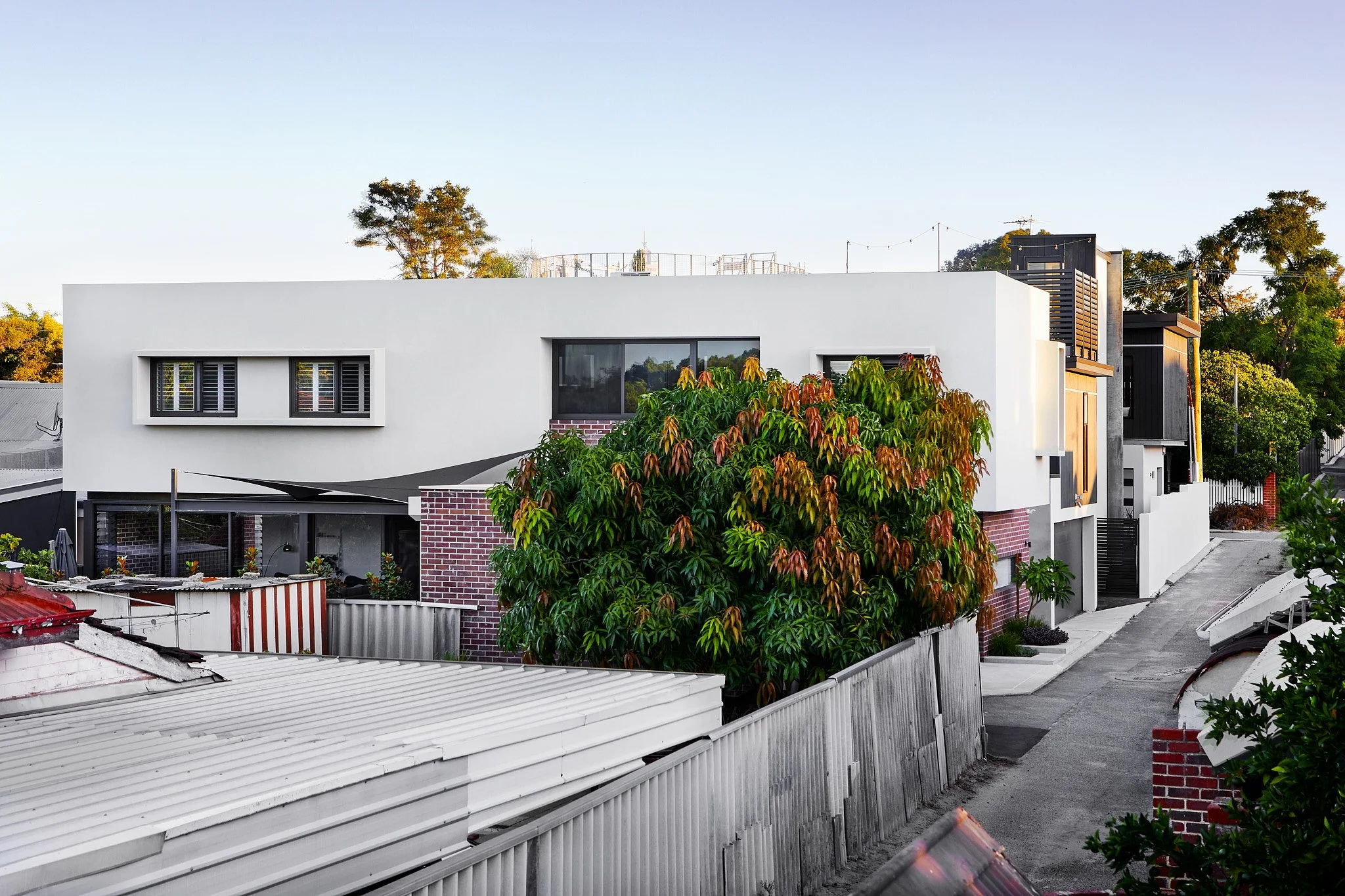 Particularly common solutions include skylights, translucent sheeting and clever window placement. Alternatively, you can go a more creative route with detailed screening and oddly shaped windows or, if you’re feeling particularly audacious, throw symmetry out the window entirely and opt for angular walls. Solutions can be found outside as well, with plants and trees that can act as privacy screens and internal courtyards to bring some natural light further into the home.