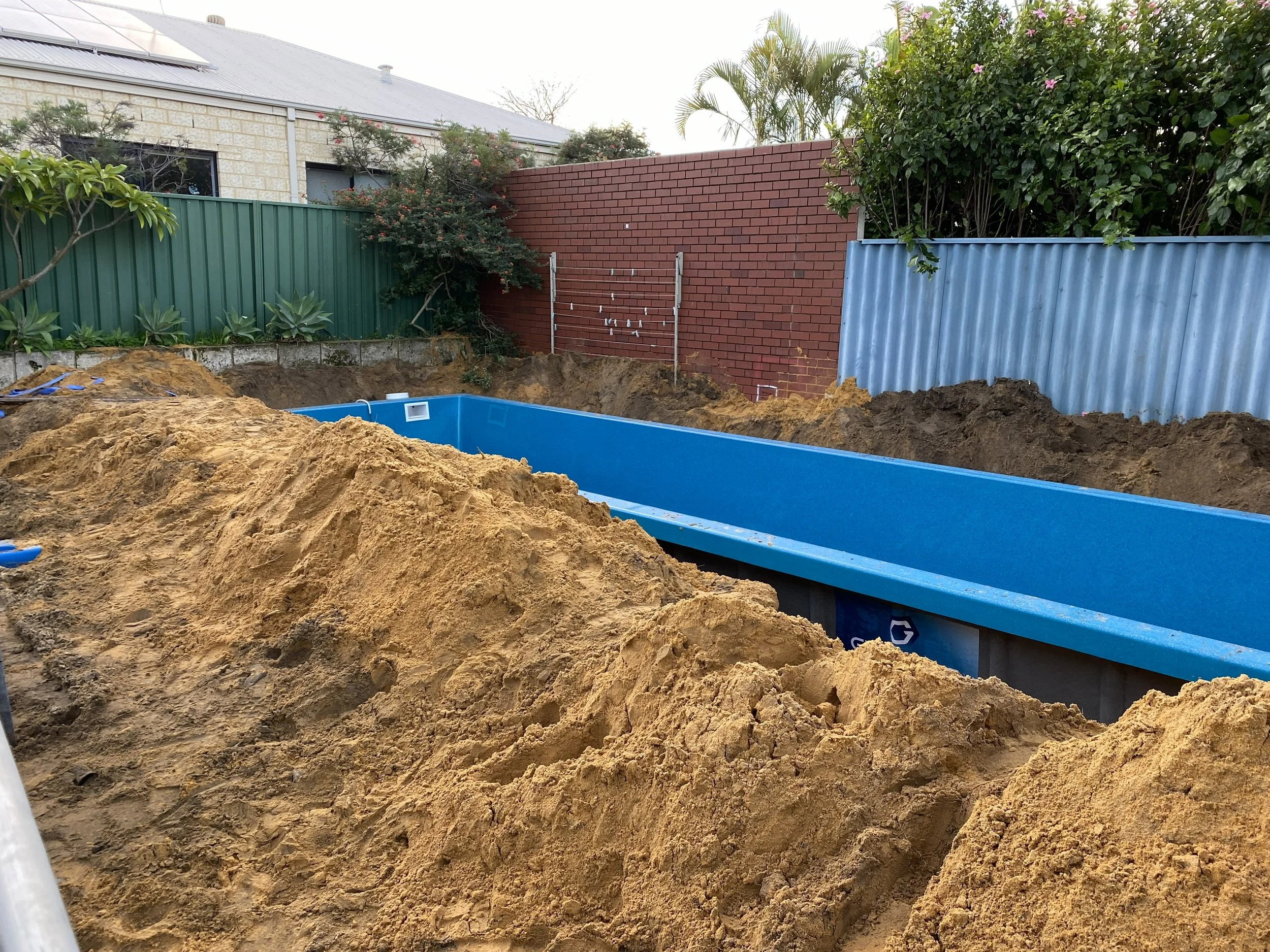 It’s also critical to consider if the surrounding soil needs extra support during the excavation for the pool, even if it’s not required for the pool itself. If you’re over-excavating, a temporary retaining wall might be necessary. Alternatively, the soil can be injected with a stabilising binder, such as polyurethane resin or cement grout.