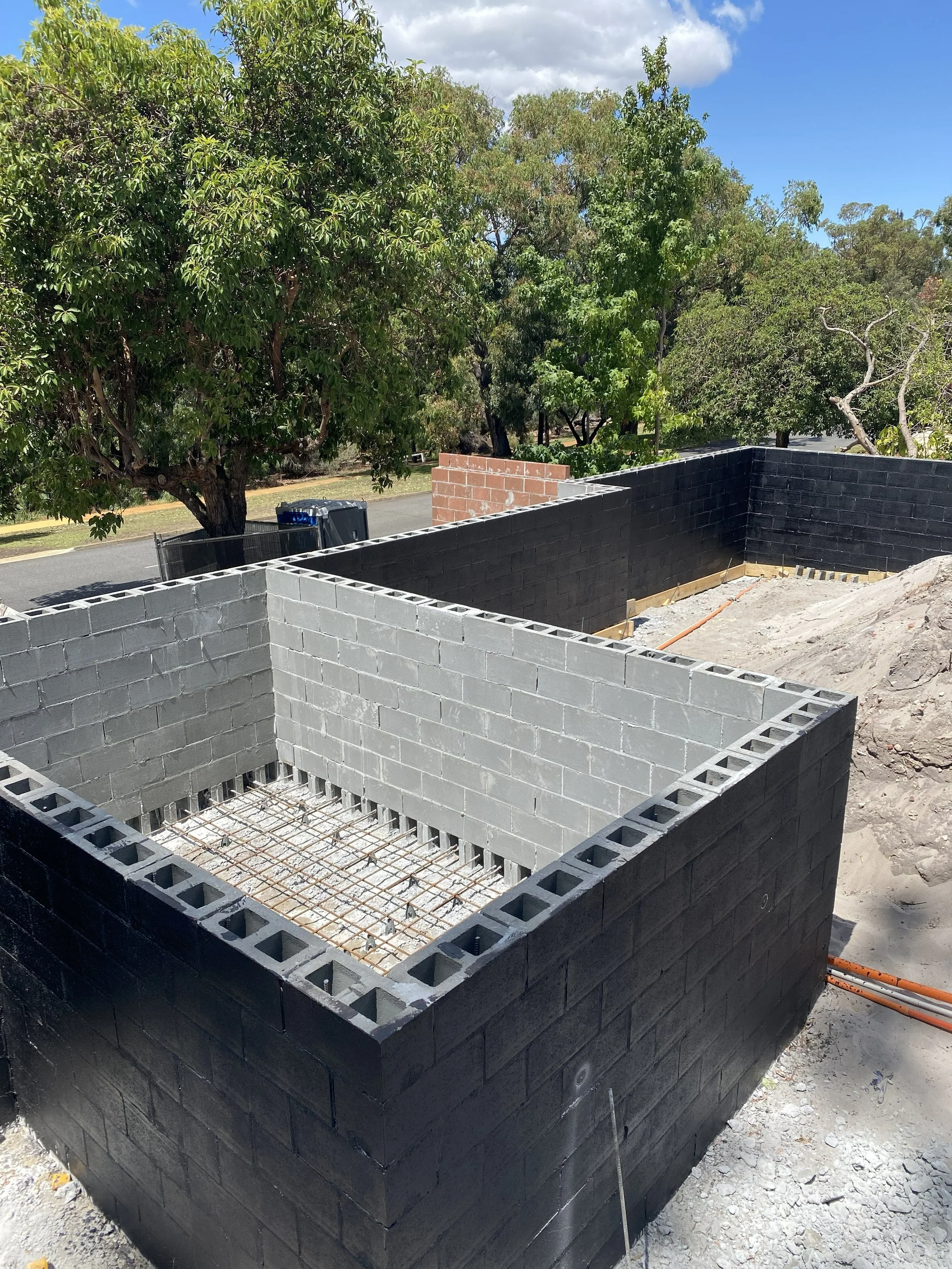 Concrete blockwork under construction at Mount Pleasant.